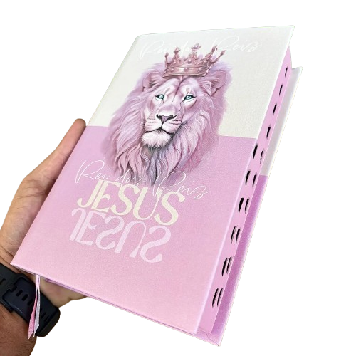 Bíblia Sagrada Feminina Rei Dos Reis Rosa Capa Dura Letras Médias Com Harpa E Índice Palavras De Jesus Destacadas Em Vermelho