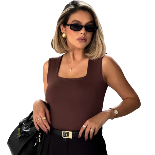 Blusa Regata Feminino Decote Quadrado Alça Grossa Casual