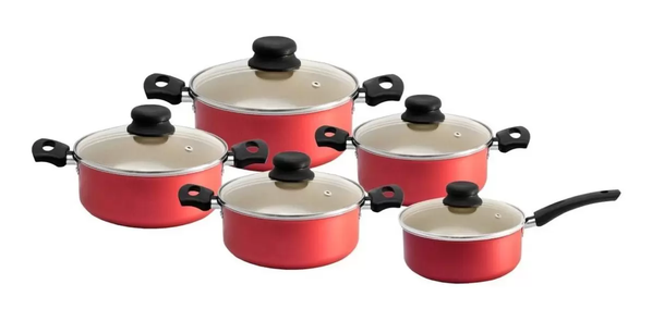 Conjunto De Panelas Antiaderente Vermelho 5 Peças Arnix