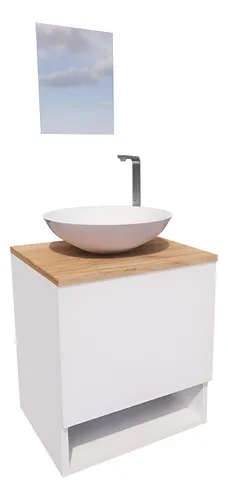 Gabinete Armário Para Banheiro Com Cuba E Espelho 40cm Pia Branco Móvel Branco/carvalho Hanover Quantidade De Furos Para Torneira Um Furo