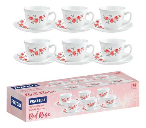 Jogo De Xicaras E Pires Vidro Café Chá 12 Peças 220ml