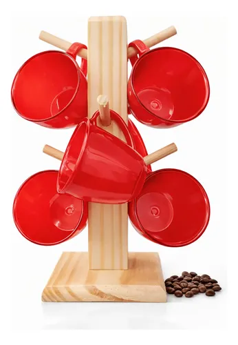 Kit 06 Canequinhas De 100 Ml Com Suporte De Madeira Acrílico
