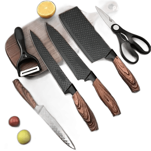 Kit Jogo De Facas Inox Corte Afiado Antiaderente Presente Cor Marrom-escuro