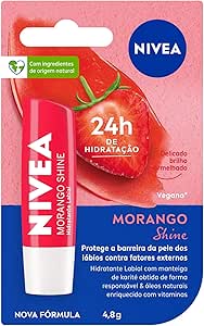 NIVEA Hidratante Labial Morango Shine 4,8g - Cuidado intensivo para seus lábios, hidratação prolongada, delicioso aroma de morango, pigmentos brilhantes e cor delicada
