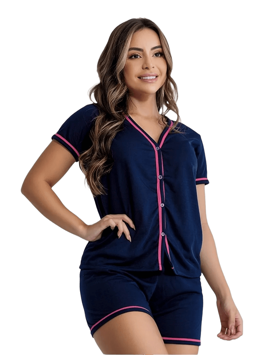 Pijama Americano Blogueirinha Short Blusa Botões Amamentação