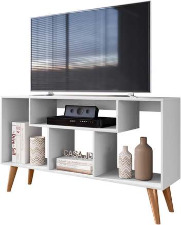 Rack Bancada Para Tv De Até 43 Polegadas Com Prateleira E Nichos Para Sala De Estar Casa Jd (Preto/Nature)