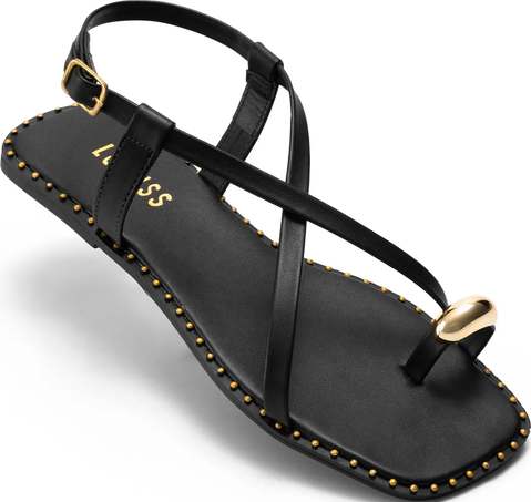 Sandália Feminina Rasteira Enfeite Metalizado Bico Quadrado