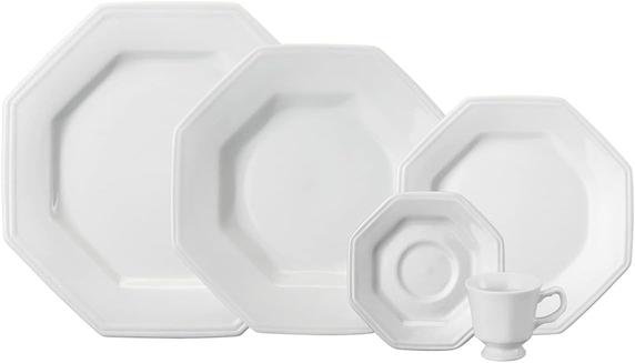 Serviço de Jantar e Chá em Porcelana, 20 Peças, Modelo Octogonal Prisma, Branco, Porcelana Schmidt